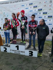 Pour ce championnat départemental sur une partie du circuit de moto cross de Vaas , Louison, Antonin et Wilson ont pris le départ entouré de notre président Jacky. Dés les premiers mètres Louison a pris le devant de la course pour ne jamais le lâcher en creusant l écart au fil des tours , tout en négociant parfaitement les difficultés en prenant juste ce qu il faut en risque .Pour Wilson et Antonin le départ fut moyen mais Wilson a rattrapé au fil des tours une bonne partie de ses adversaires pour la 4ème place puis la troisième place sur la fin de sa course . Pour Antonin qui lui aussi remonté tranquillement a chuté dans un virage ce qui a entrainé une crevaison et a du rejoindre le parc a vélo en courant . Il termine lui aussi .
