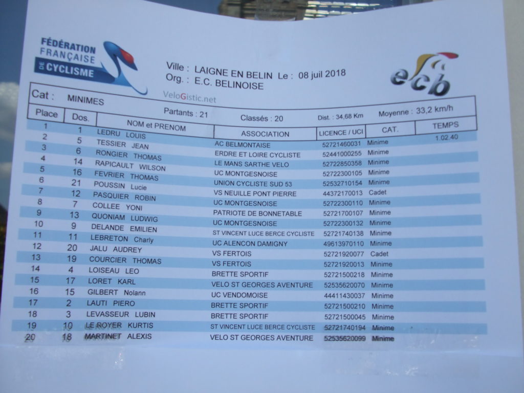 21 coureurs sur cette course avec Robin PASQUIER, Ludwig QUONIAM et Wilson RAPICAULT pour un départ sous la chaleur avec 6 tours de 5.780kms.