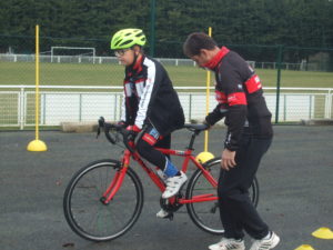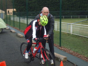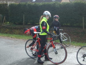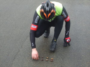 Puis David s’est préparé tant bien que mal à partir sur la route pour une boucle de 12kms……Il a cherché son casque dans sa voiture et a remarqué au bout de quelques instant qu’il était déjà sur sa tête, puis il a perdu un verre de ses lunettes sans sans rendre compte avant d’expliquer a l’aide de gland le déroulement de la sortie qui malheureusement fut prise par la pluie.