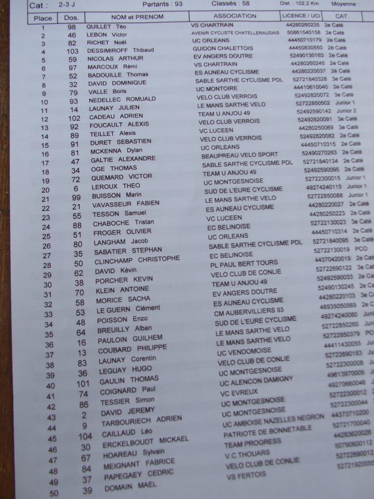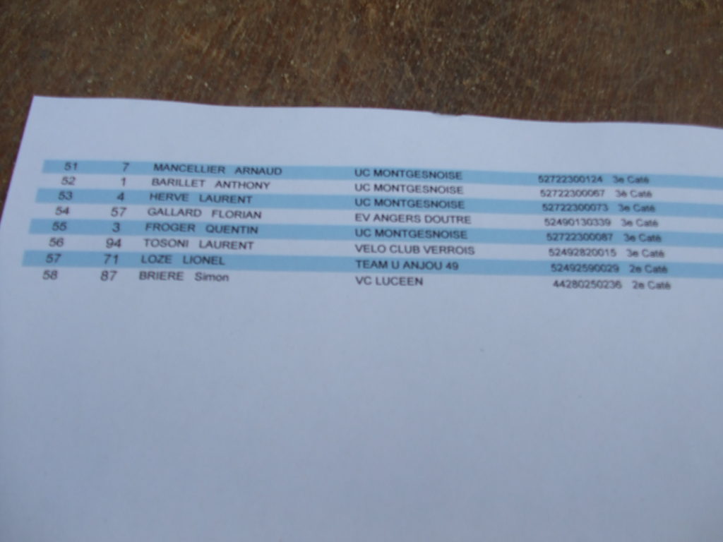 Le premier groupe à 11 avec aucun de L’UCM puis un groupe de 30 avec Jérémy DAVID, Julien MULOT, Romuald HERVE et Théo LEROUX, puis le 3ème paquet de 26 avec Arnaud MANCELLIER, Quentin FROGER, Thomas GAULIN, Adrien TARBOURIECH, Anthony BARILLET et Laurent HERVE ( le local).