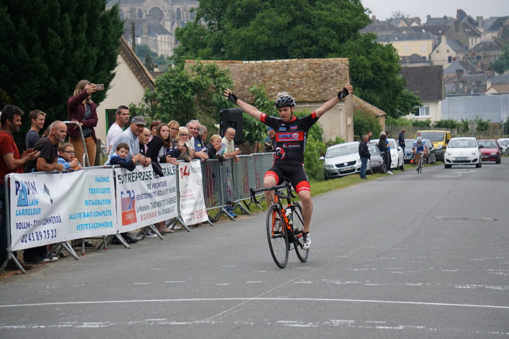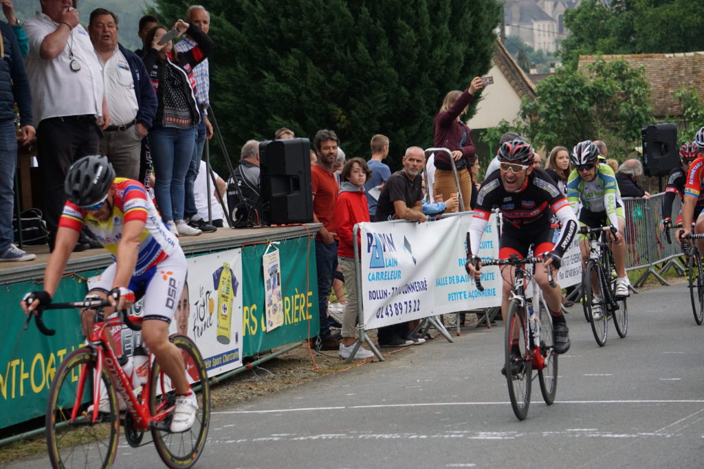 Dès le premier tour, les Montgesnois, Fred GAULIN et Cyril DAVID sont dans les premières attaques. Après le passage de la 2éme cote de Fatines, Cyril fait l’effort pour aller chercher 3 coureurs sortis. Ils formeront l’échappée du jour, avec 45 secondes d’avance. Le travail d’équipe s’organise derrière, afin de contrôler le peloton. Très beau travail de notre jeune coéquipier, Kévin LEON, il apprend vite et devrait rejoindre rapidement les catégories supérieures. Finalement 2 coureurs iront au bout, Cyril gagne en solitaire, en plaçant un démarrage au dernier kilomètre.