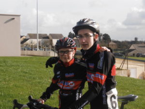 Une course pour lui très boueuse et technique avec beaucoup de devers. Un ptit problème pour Julien avec un saut de chaine et une glissade à cause de la boue ou il a enfourché un poteau de balisage. Malgré un départ en pente, de gros progrès pour lancer la machine.
