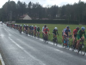 C’est au 13ème tour que 30 coureurs ont pris les devants avec Vincent LEBRETON et le groupe se cassa avec 10 éléments et 20 avec toujours Vincent dans ce groupe avec 1mn 30 d’avance et derrière un contre de 9 hommes avec Julien MULOT qui avait pour objectif de faire du rythme et de finir sa course et malheureusement il pète dans la dernière bosse et s’accroche pour maintenir quand même sa place. Il finira rincé mais content d’avoir fini sa première course en 2.