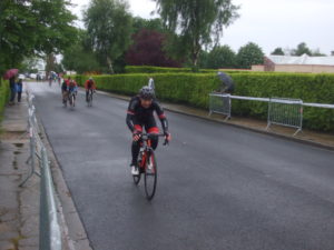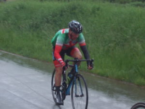 Ils avaient 9 tours de 5,7kms à accomplir, malgré les faux plats, le vent et le mauvais temps, personne n’a pu sortir du peloton, Patrice finit 9ème et frigorifié.