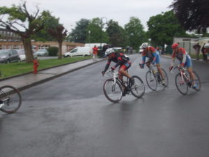 Dans la course 1, 2, 3 et J, Théo REUNGERE, un de nos junior a pris le départ sous une pluie battante. La course était nerveuse. Plusieurs échappées ont réussi à se former, mais seulement parfois pour quelques kilomètres. Un seul groupe de 9 coureurs a réussit à tenir 2 tours devant, mais se font revoir dans le dernier tour, sous l’impulsion notamment de Théo qui a tout donné pour faire la jonction. Malgré cela, Théo a gardé des forces pour le sprint, puisqu’il termine 6éme au scratch, et 3éme des 3éme catégories.