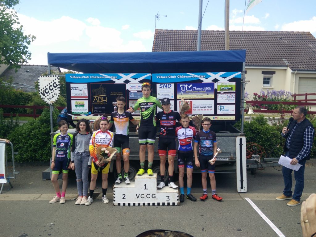 Grâce à une très bonne entente devant, la victoire allait se disputer entre ces 6 coureurs. Ils arrivèrent ensemble pour disputer le sprint final et dans cet exercice, le favori Tristan VERRIER( CA EVRON), le remporta assez facilement. Derrière, Alexandre arriva seul pour la 7ème place. Pas mal pour quelqu’un qui n’ avait pas de jambes aujourd’hui !😳