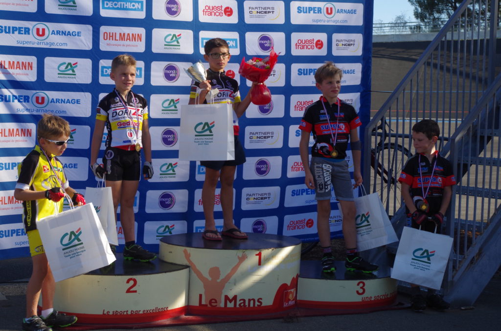 Pour la première manche, 2 tours de piste pour les Poussins, 4 pour les Pupilles et 6 pour les Benjamins.