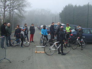 Thomas, Lucas, Mylan, Elouen et Nolan ROUILLON un nouveau licencié de L’UCM sont venus sous le brouillard ce matin pour des réglages de vélo, des techniques de slalom pour être prêt pour la première compétition la semaine prochaine à St Vincent Du Lorouer.