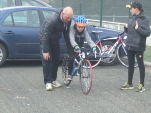 Nolan a pu découvrir ses nouveaux coéquipiers, des notions de vitesse, de réglage de selle et de gonflage de pneu sous œil de Philippe, David nos encadrants et de ses parents. Dans quelques jours vous en connaitrez un peu plus sur ce jeune qui déjà a pu nous montrer ses talents.