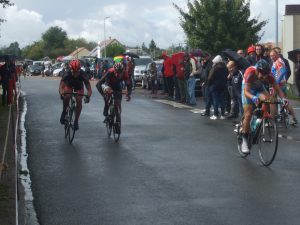 Sur cette course rendu dangereuse par la pluie la palme de la cascade sans trop de gravité revient à Renaud serré à quelques mètres de l ‘arrivée par un des concurrents .