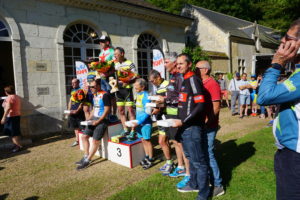 Pour la course des 4ème catégories, 6 tours a effectuer. C’est seulement au début du 4éme que l’échappée se forme, sur une attaque de Cyril dans la côte, rejoint par 2 coureurs, puis 3 autres et finalement se retrouver à 16 devant. Seulement une poignée de coureurs roulaient pour faire l’écart et finalement arriveront au sprint à 16.