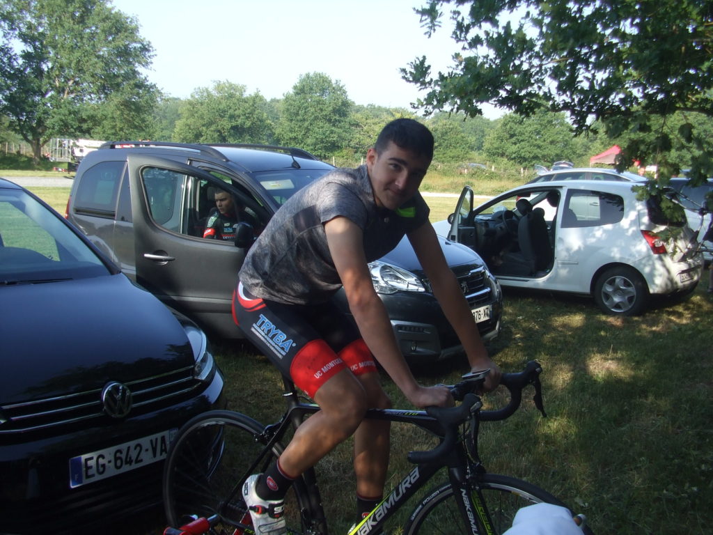 Après plusieurs attaques non significatives dans les 2 premiers tours, 2 coureurs accélérèrent de nouveau au troisième tour dans la 1ère grosse et longue bosse. Aurélien ne pouvant suivre le rythme de ces 2 minimes patienta jusqu’en haut avec un autre coureur pour revenir dans la partie descendante. Mais après une autre attaque dans la 2ème bosse, Aurélien et son compagnon de contre lâchèrent. Ils seront même repris par le peloton par la suite…