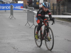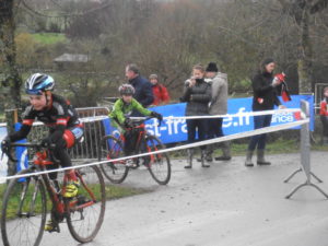 Antonin LEBARBIER fut le premier à prendre le départ de ce cyclocross très très boueux. Encouragé par la team LEBARBIER et la team FURET, il pris un bon départ mais n’arrive que 7ème sur le circuit. Il fait un gros effort pour arriver à la 3ème place à mi-course. Mais ayant laissé beaucoup d’énergie pour revenir, il se fait rattraper à la cloche par plusieurs concurrents.