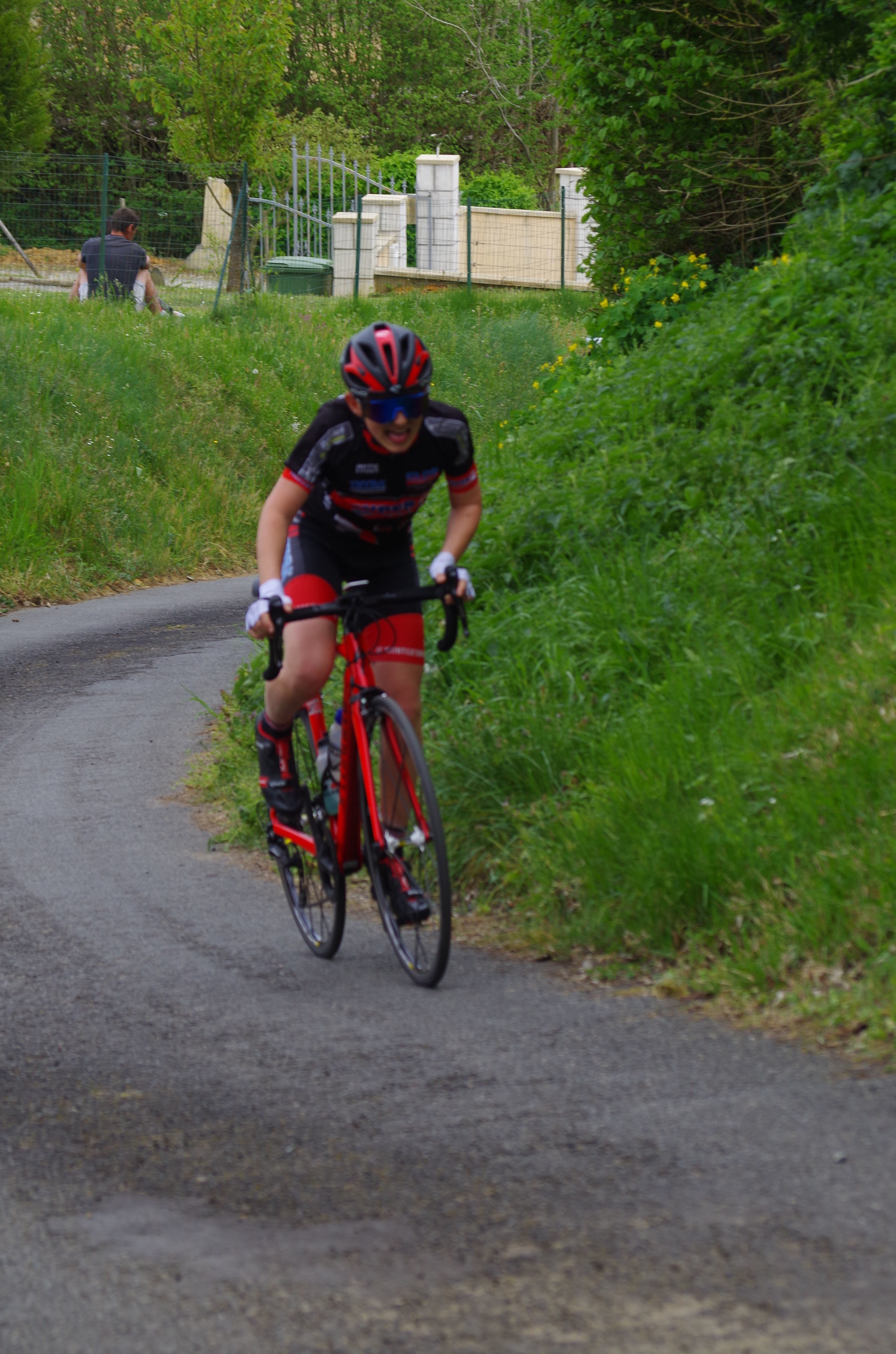 Des attaques dès les premiers tours. 2 coureurs s’échappent. Tous les coureurs Montgesnois s’accrochent au peloton.