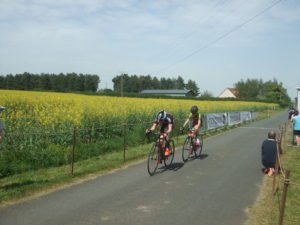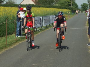 On a vu souvent nos rouges et noires à l’avant du peloton, Ludwig tenta sa chance au 4éme tour en partant seul mais fut repris puis ce fut au tour de Louison de partir avec Antoine DUGUE le futur vainqueur pour prendre 40 s et derrière un contre de 7 avec Aurélien et Ludwig.