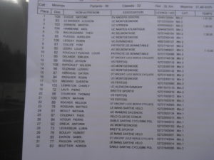 36 partants avec Ludwig QUONIAM, Wilson RAPICAULT, Antonin DREUX, Aurélien PLESSIS et Robin PASQUIER pour 8 tours de 4kms.