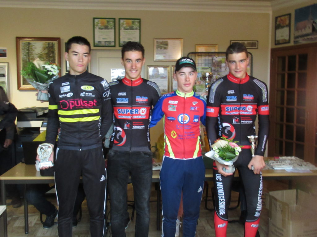 Nos 4 cadets Dorian PERLEAUX, Mathéo MANCELLIER, Louis BARRELET et Justin ROUSSET n’ont pas été épargner non plus par le vent et la pluie et on a pu tous les voir sur les devants de la course.