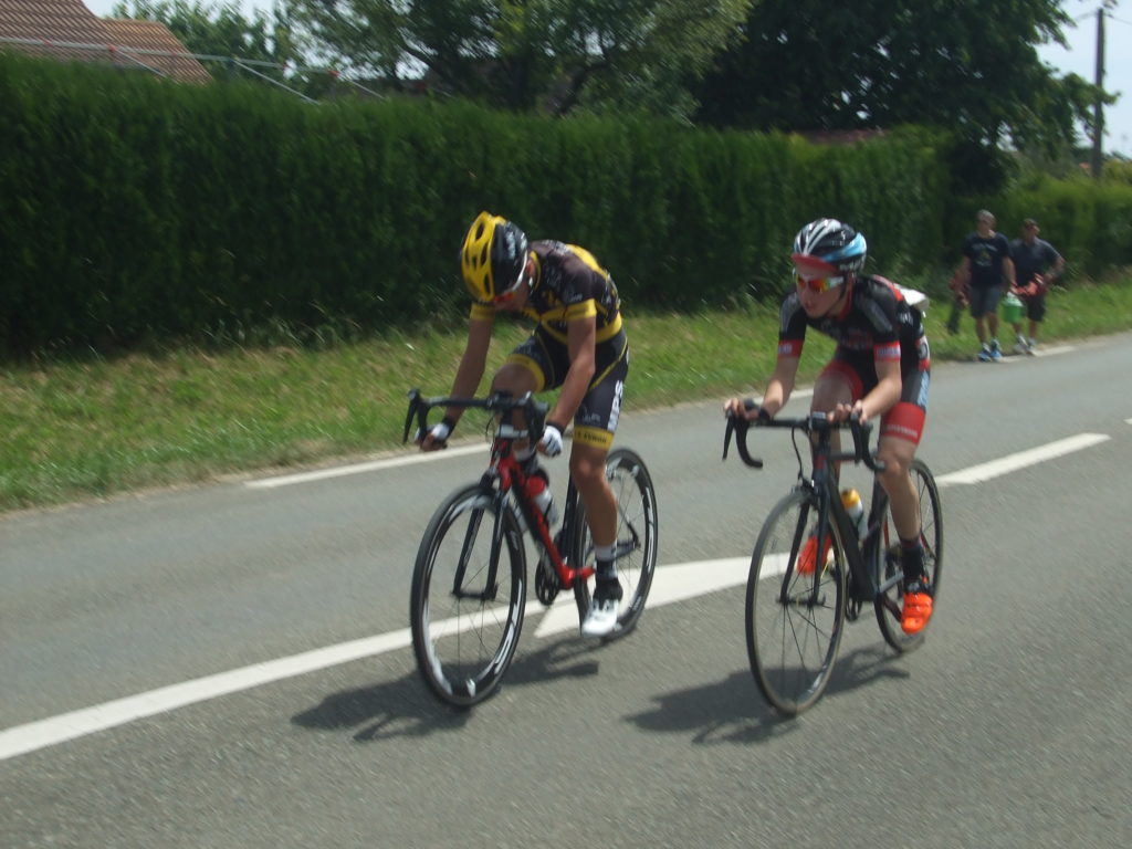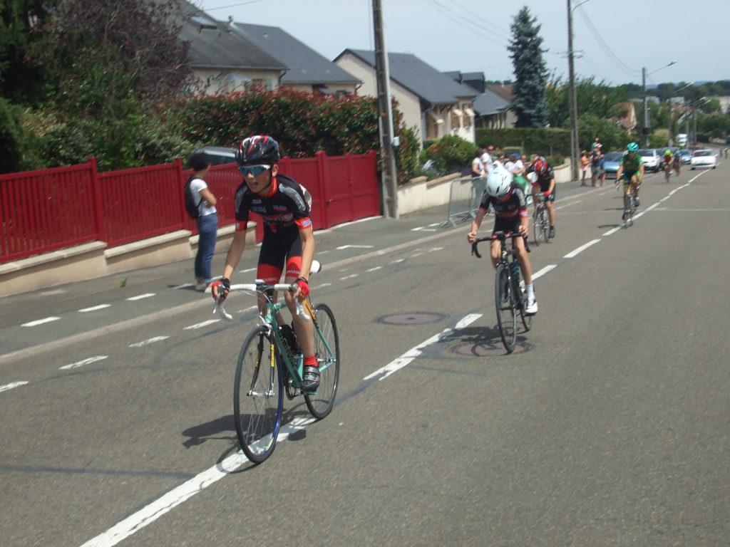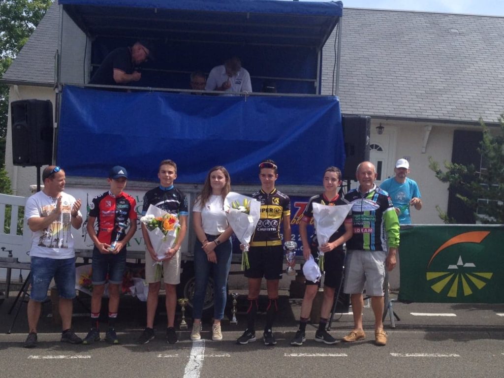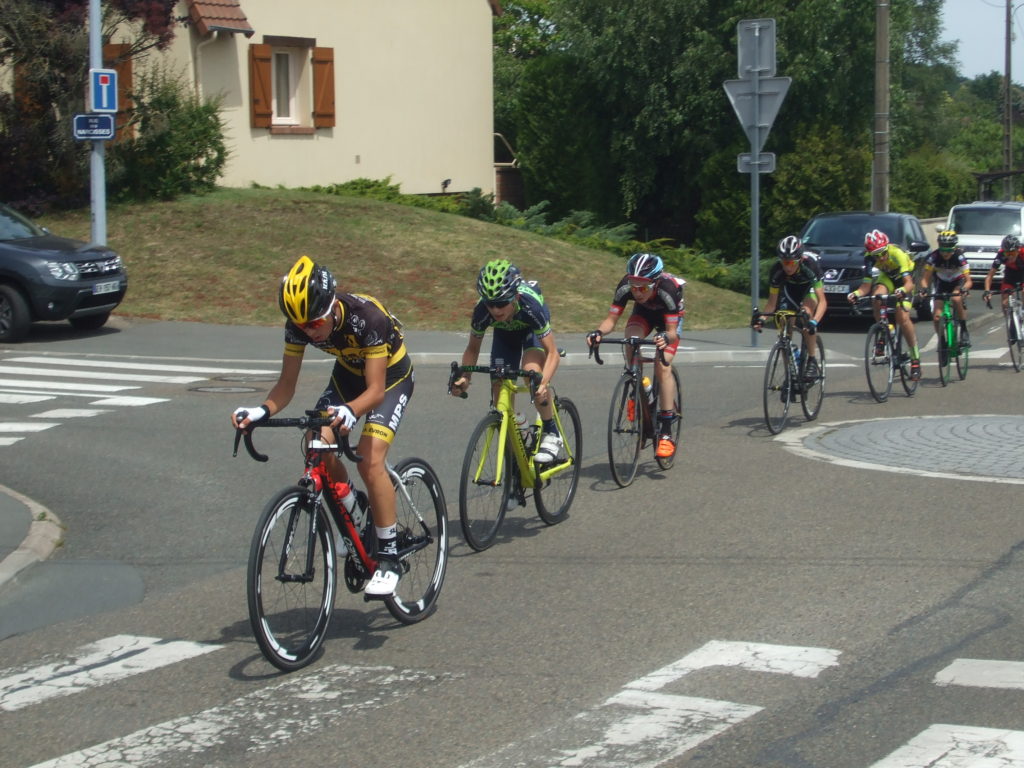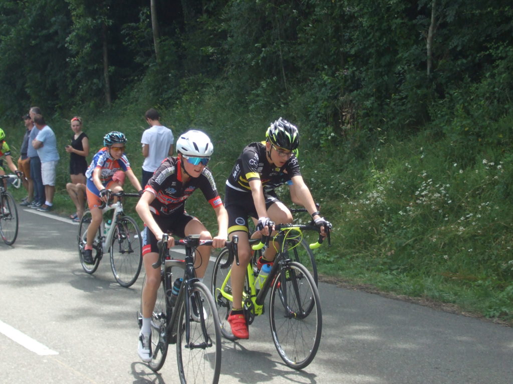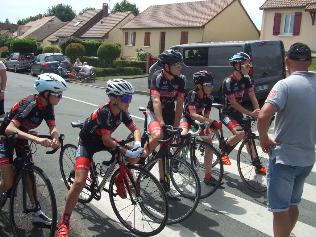 Au 1er tour Antonin et Loris se sont trouvé décrochés et au 3ème tour Louison et Hugo MORIN le futur vainqueur sont partis puis derrière le peloton avec Aurélien qui dés le départ a eu des problèmes de câble de dérailleur et les vitesses ne passait pas ne pu s’exprimer correctement.