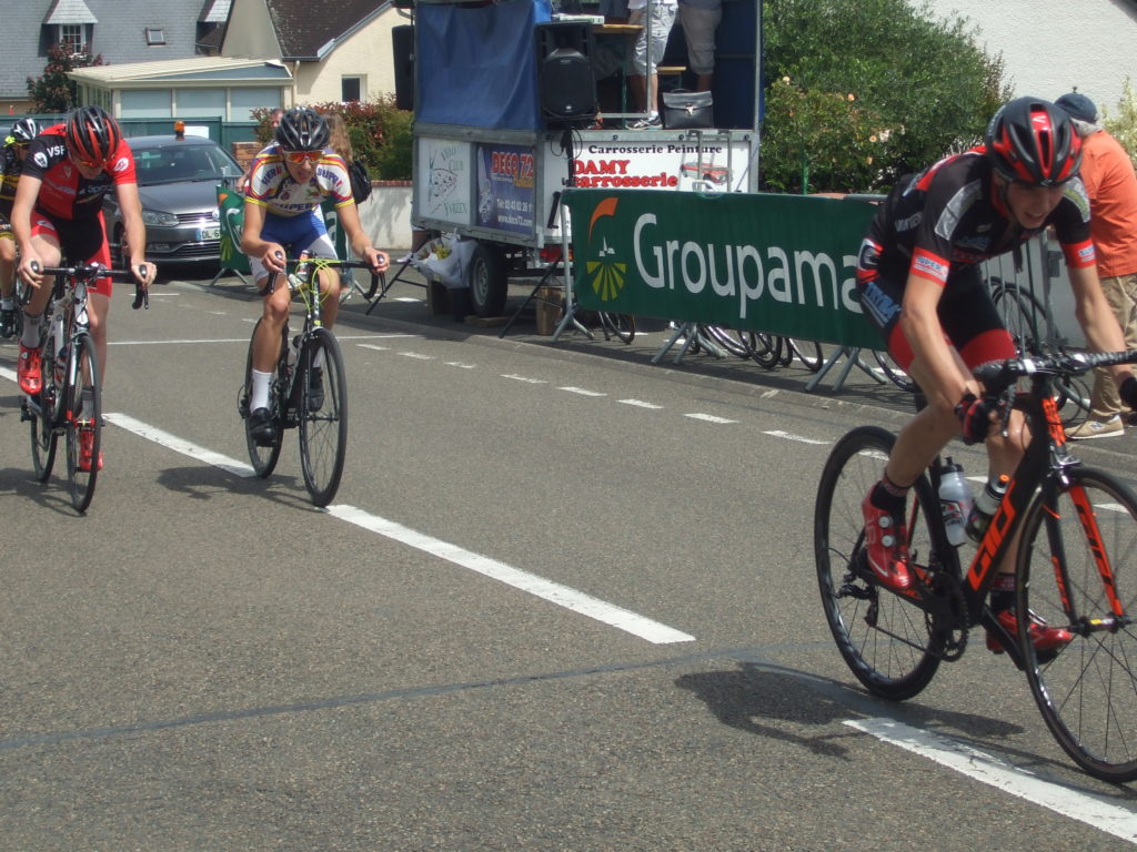 Au 1er tour Hugo ROUSSET décrocha du peloton puis un peu plus tard Louis BARRELET avant de voir des nombreuses attaques notamment de Louis ROULAND surveiller de très prés par Mathéo MANCELLIER qui comme Antonin et Thomas TOUCHARD étaient souvent sur les devants du peloton. Alexandre un peu plus sur l’arrière.