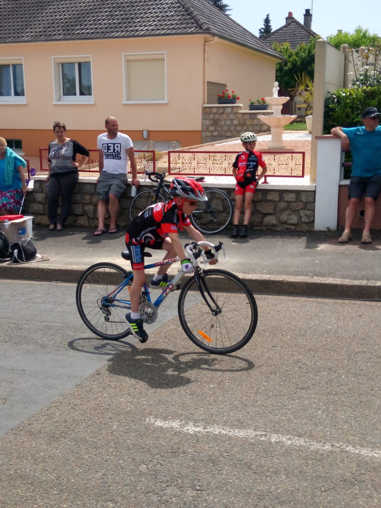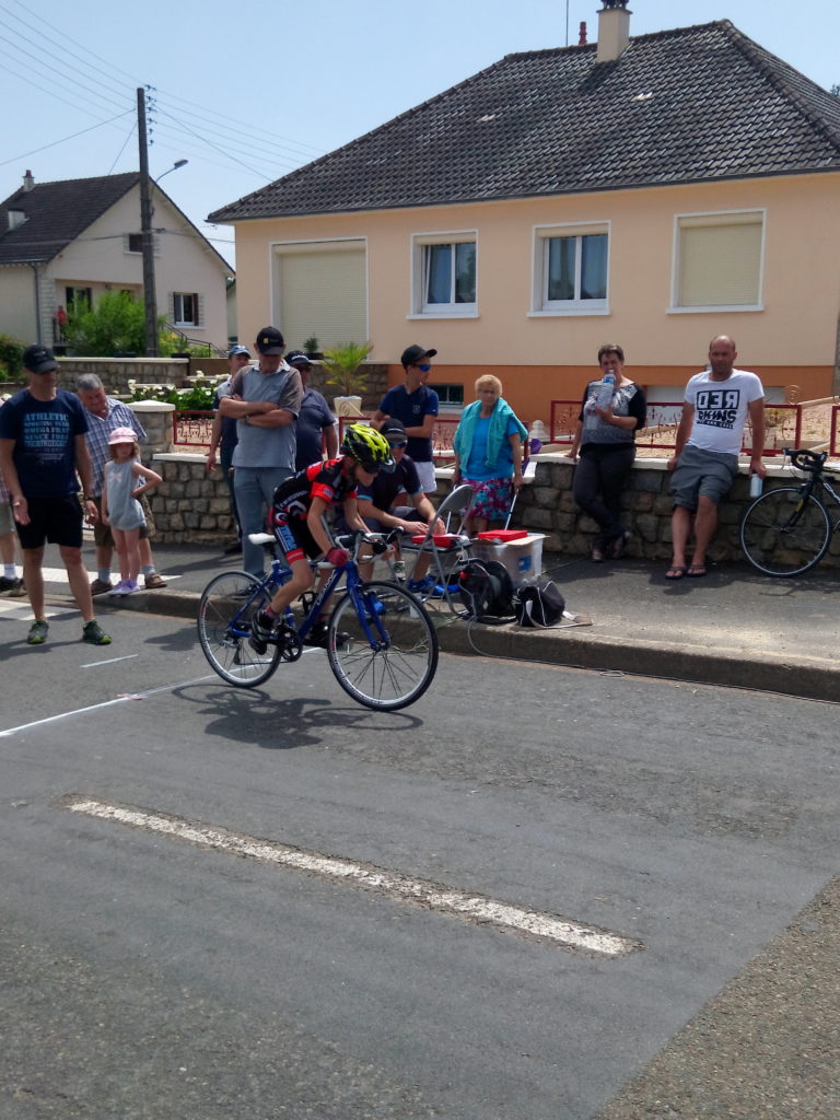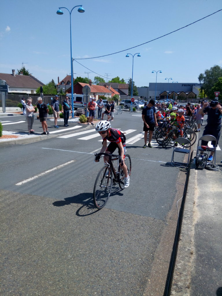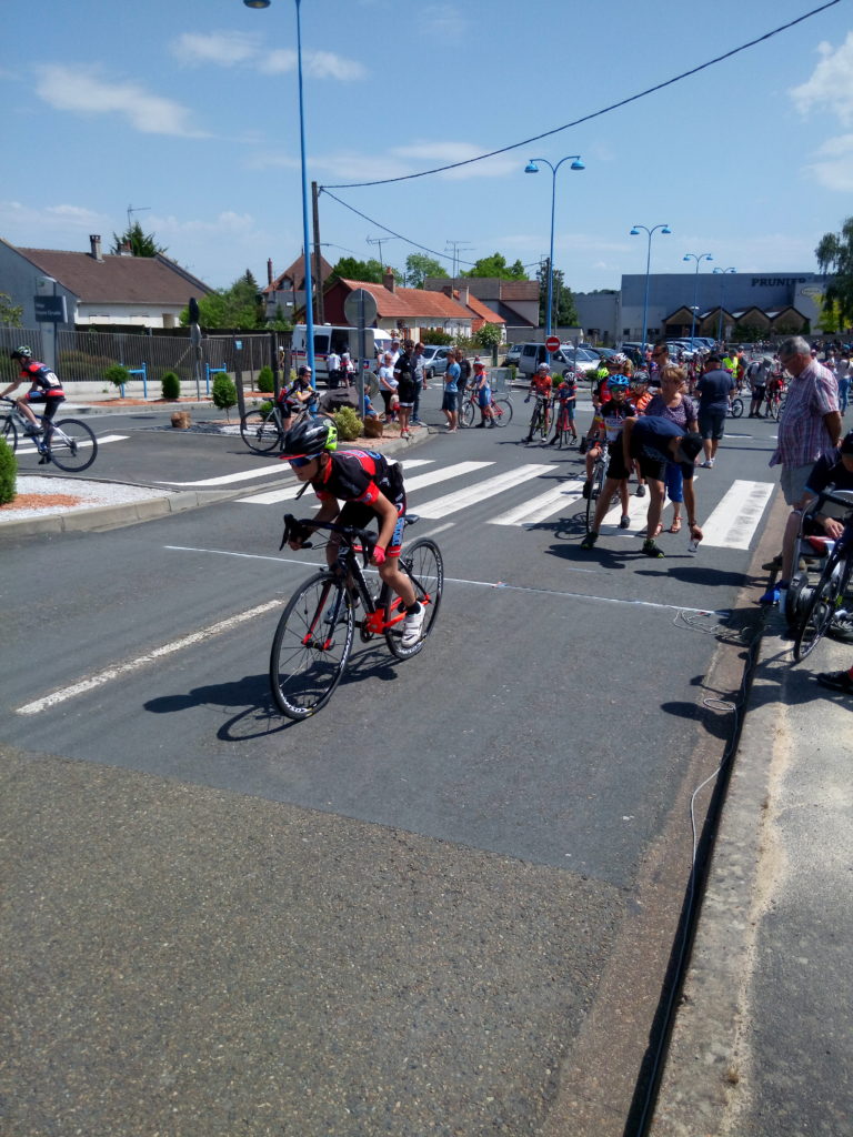 Du soleil à Connerré avec une grosse chaleur avec pour commencer Alexi CHENIER, Marceau FOUGERAY et Nolan ROUILLON à l ‘adresse et la vitesse pour les benjamins ou malheureusement Ulysse CORNILLE chute et se fait mal au pied mais sans gravité et courageux il remontera sur son vélo.