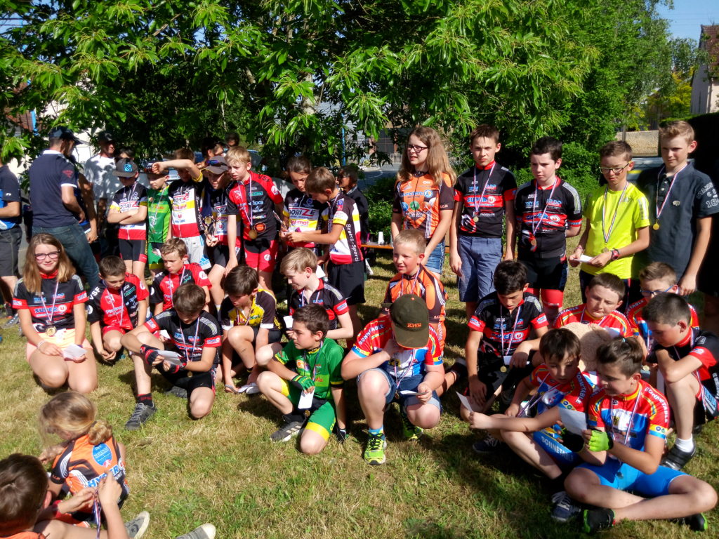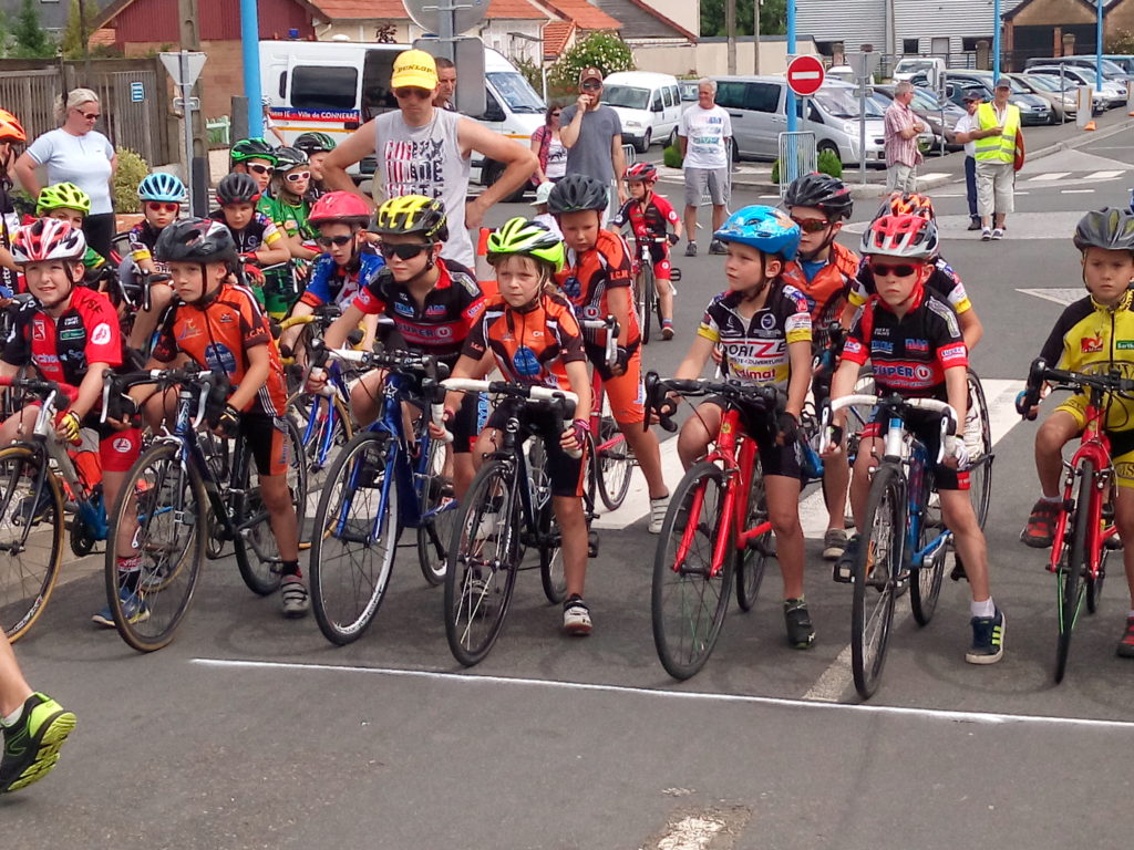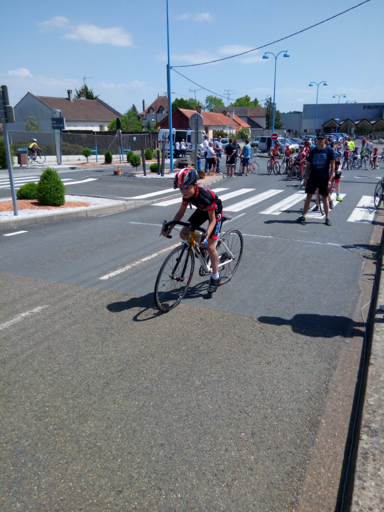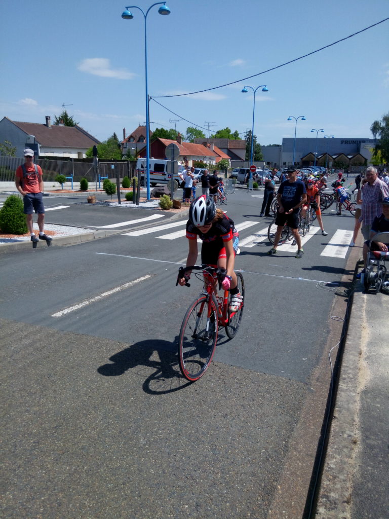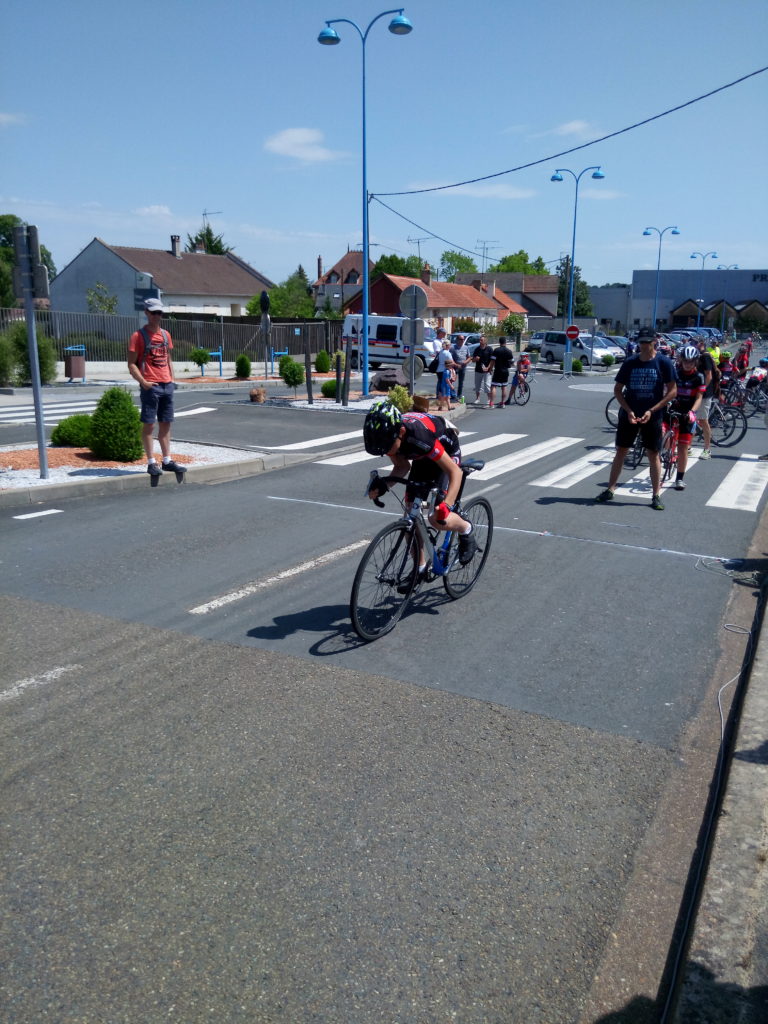 Du soleil à Connerré avec une grosse chaleur avec pour commencer Alexi CHENIER, Marceau FOUGERAY et Nolan ROUILLON à l ‘adresse et la vitesse pour les benjamins ou malheureusement Ulysse CORNILLE chute et se fait mal au pied mais sans gravité et courageux il remontera sur son vélo.