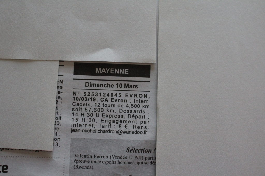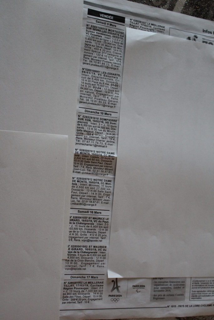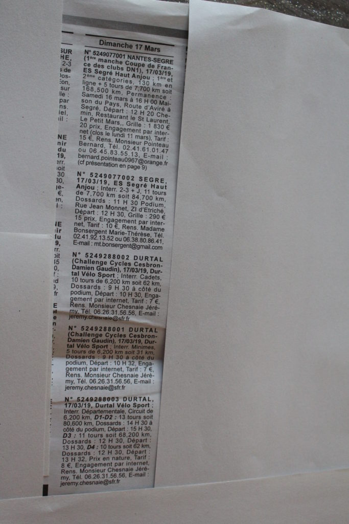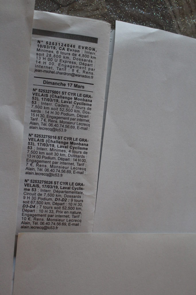 Détail course en Sarthe du 09 au 17 Mars 2019