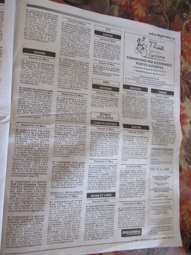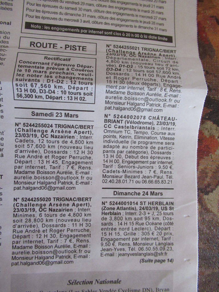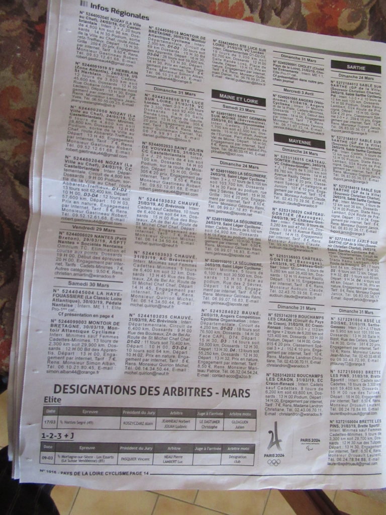 Détail des courses Pays De Loire du 23 mars au 3 avril 2019
