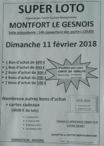 Venez nombreux participer à notre premier loto de l année, pour jouer, faire des crêpes, vendre des gâteaux, tenir la buvette, mettre ou débarrasser la salle. Ou simplement passer un bon moment