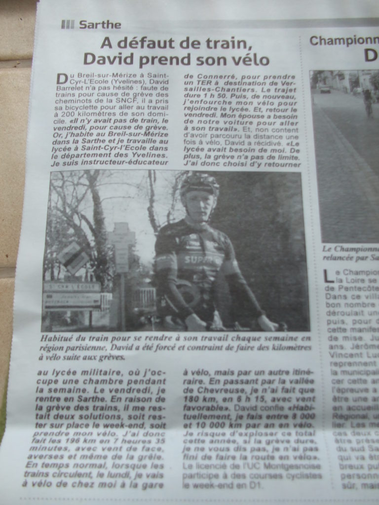 Nouvelle de la Star Départementaux Vie du club - 3 mai 2018 Un article de notre star sur le Pays de Loire cycliste et ce matin à cause ou grâce a une nouvelle gréve de train, il a été suivi par une caméra et un reporter pour France Info.
