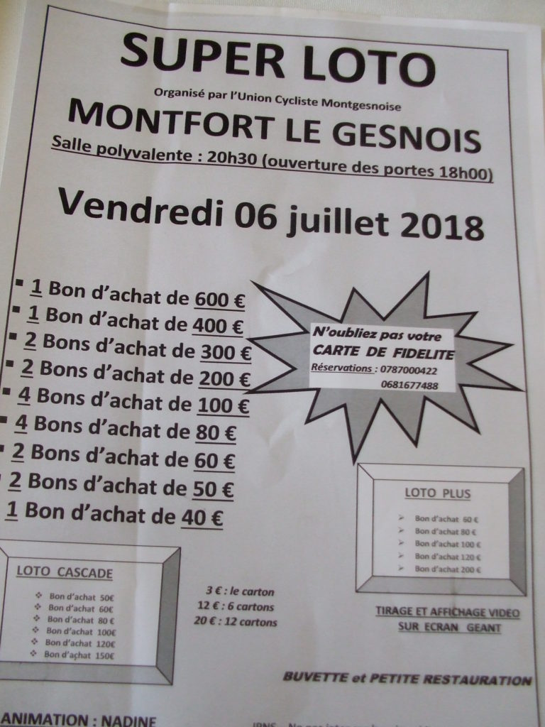 Dés maintenant retenez la date du 6 juillet pour le 3ème loto de l’année et partagez massivement.