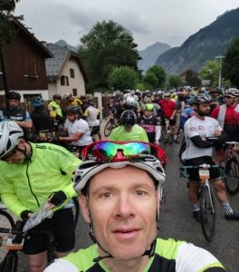 Trente min plus tard, je suis en bas avec le même groupe (une quinzaine d’unités pour amorcer la longue remontée en faux plats sur St Michel de Maurienne). Dans ce groupe je suis le seul Français.