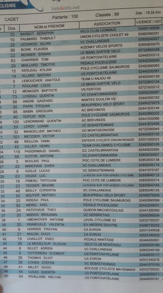 Un groupe supplémentaire de 4 rejoint l’échappée, ce petit groupe se disputera la victoire avec le premier Sarthois Erwan BESNIER (MSV)