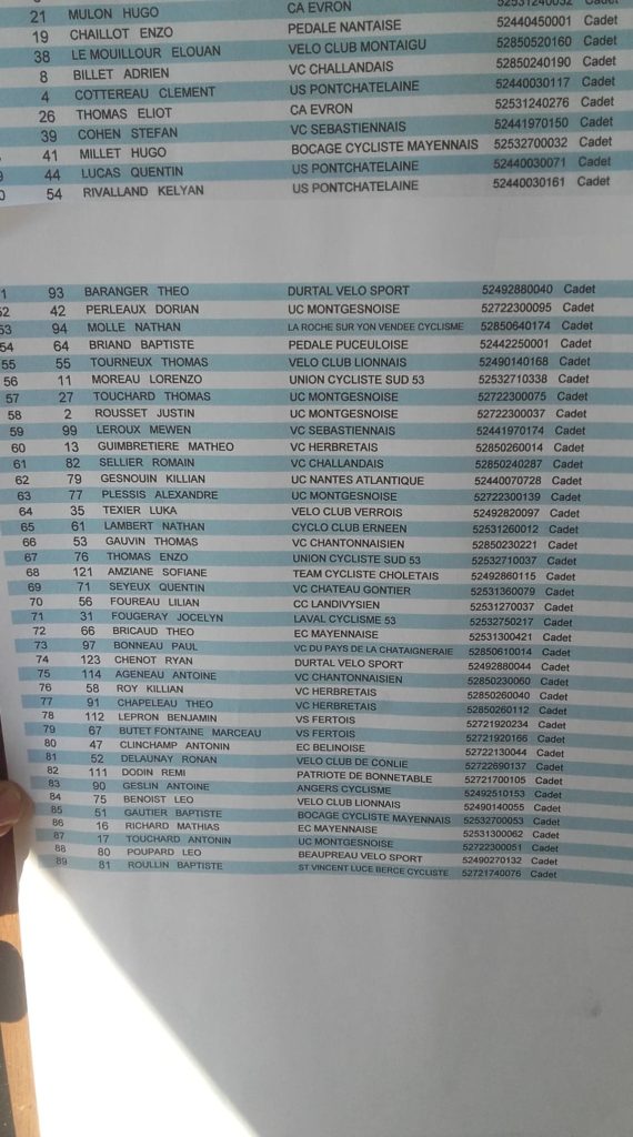 Ce sont les cadets qui ont fait les premières reconnaissances sur ce circuit très dures et le soleil qui commençait a pointer le bout de son nez dés 9h pour 10 tours de 7.855 et un peloton de 99 coureurs.