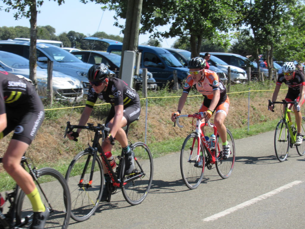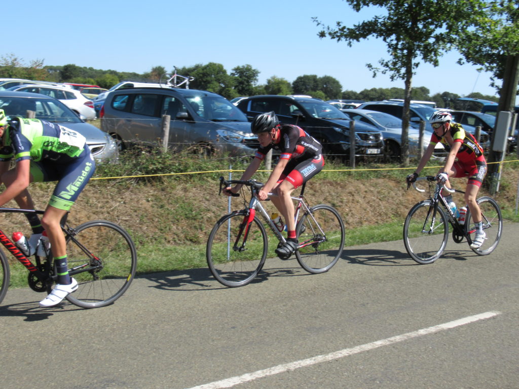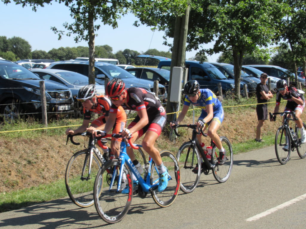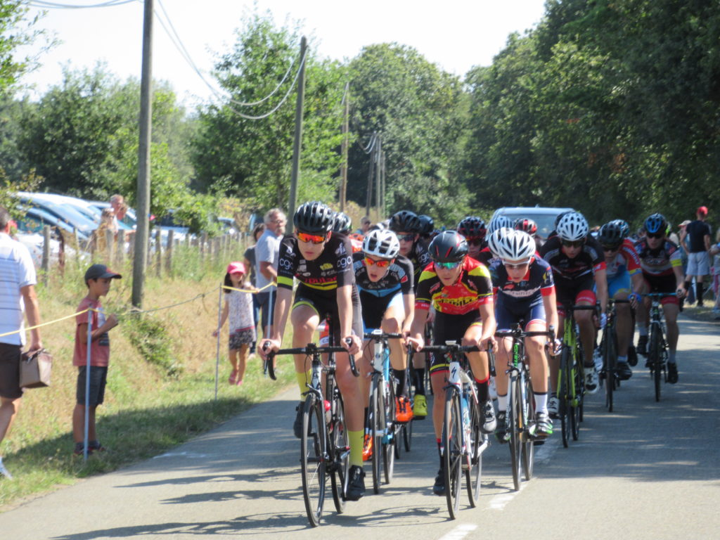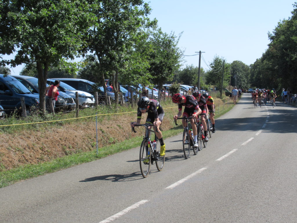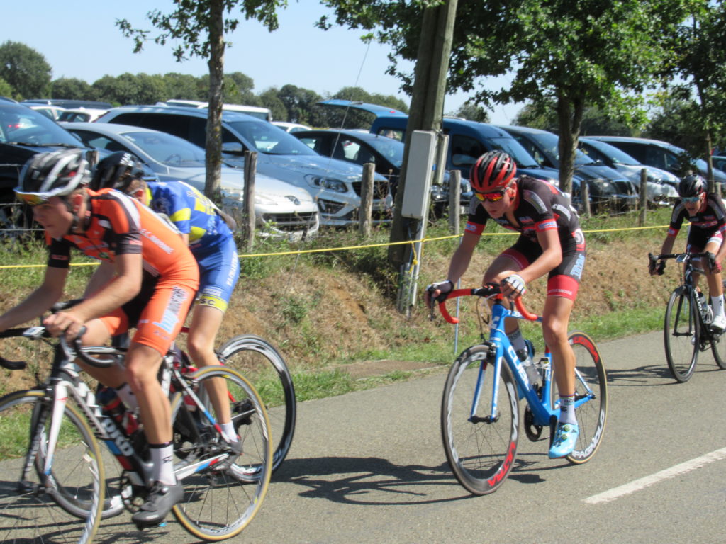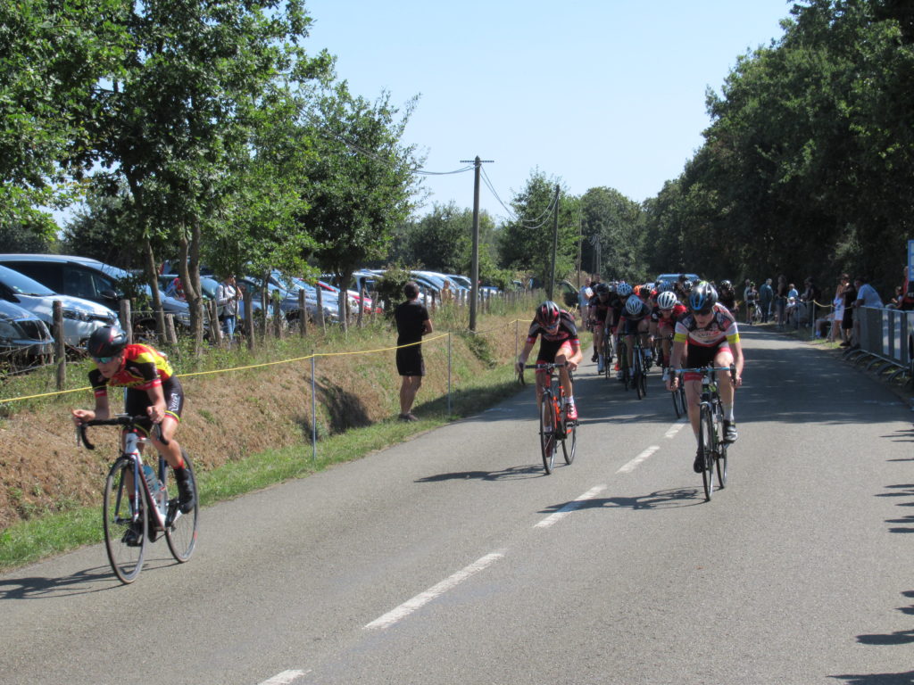Pendant que l’échappée de 4 prenait le large, derrière Antonin et Thomas TOUCHARD, Dorian PERLEAUX, Alexandre PLESSIS faisaient le frein et sautaient dans tous les coups.