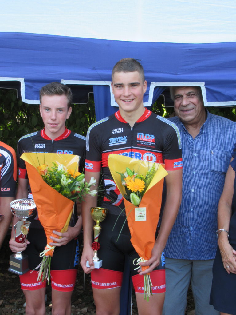 Des rouges et noirs et encore des rouges et noirs chez les cadets où d’abord dès le départ une offensive de Mr Louis BARRELET avec un autre coureurs puis rejoint par Justin ROUSSET et un autre concurrent.