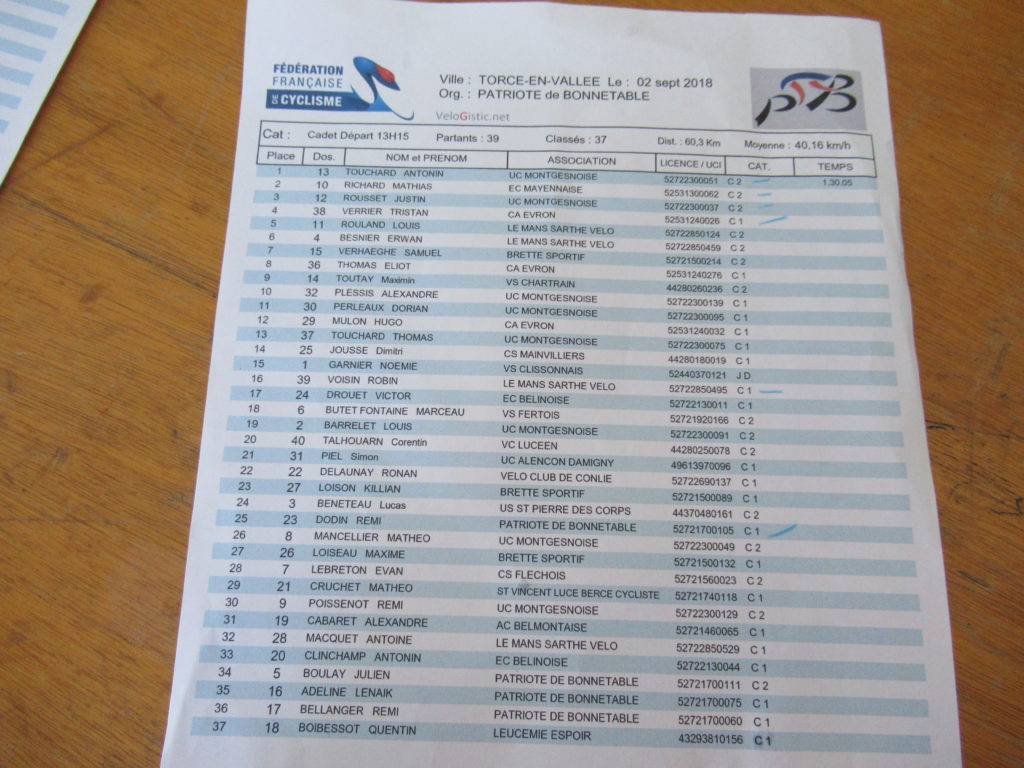 Rémy POISSENOT terminera sa course et Hugo ROUSSET était lui aussi au départ.