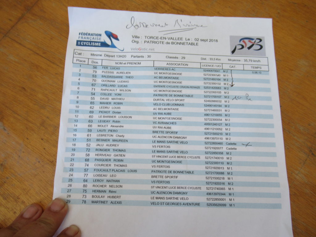 30 partants sur ce circuit avec une moyenne de 35,8 km/h pour nos minimes avec le retour de Louison LEBARBIER après une grande coupure et comme Antonin DREUX préparent leurs reprises de la saison de Cyclocross dans quelques semaines.