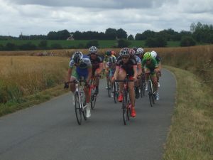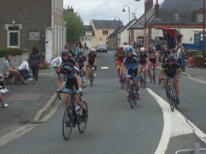 55 participants avec une délégation de 11 Montgesnois …..De nombreux supporter et notre président Jacky pour assister à cette course.Un début de course assez mouvementé avec plusieurs attaques sans grand succès puis dans le 2ème tour un petit groupe parvient à sortir avec Adrien et Laurent suivi d un groupe de 2 avec Maxime et Alexis qui sors aussi du peloton avec un temps de retard pour rejoindre ce qui sera la bonne échappée . L entente sera un peu dur dès le début puis au bout de quelques tours ils ont réussi à trouver une entente correcte . Derrière à chaque tentative de contre  un Montgesnois était là pour casser le rythme . L’échappée prend rapidement une avance confortable de 2 mn . Puis un groupe de 7 se forme avec Fréderic et un autre groupe de 9 avec Bernard , Arnaud et Richard . Une échappée à 13 ça fait beaucoup et une faible allure de 36km/h sur les 25 derniers kilomètres fut propice à des attaques à chacun leur tour de nos 4 Montgesnois  .