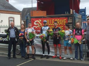 C’est donc à 3km de l’arrivée qu’il décide d’en placer une immédiatement suivi de 2 concurrents , pendant que les autres temporiser l’échappée . Le trou étant fait assez rapidement une rapide entente c’est faite afin de gérer leur avance sur nos anciens compagnons . A 500 mètres de la ligne ils ont commencé à se regarder et le gars de Peltrax porta une attaque pour essayer de les surprendre . Alexis s’attendant à une attaque de sa part gicla dans sa roue jusqu au dernier virage qui se trouve à 150 mètres de l arrivée . Dans ce dernier virage personne ne voulait lancer le sprint  alors Alexis à sauter à l’intérieur  du virage lançant son sprint se toutes ses forces . Ses concurrents ne s attendait pas à ce sprint tout en force et ce qui lui a permis de faire un trou que personne ne pourra boucher en 150 m .