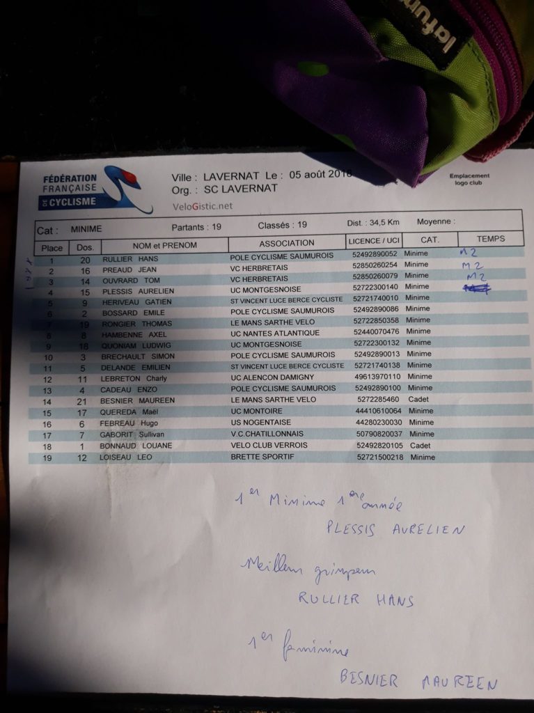 Sous une grosse chaleur,19 minimes étaient au départ dont nos deux Montgesnois, Aurélien PLESSIS et Ludwig QUONIAM.