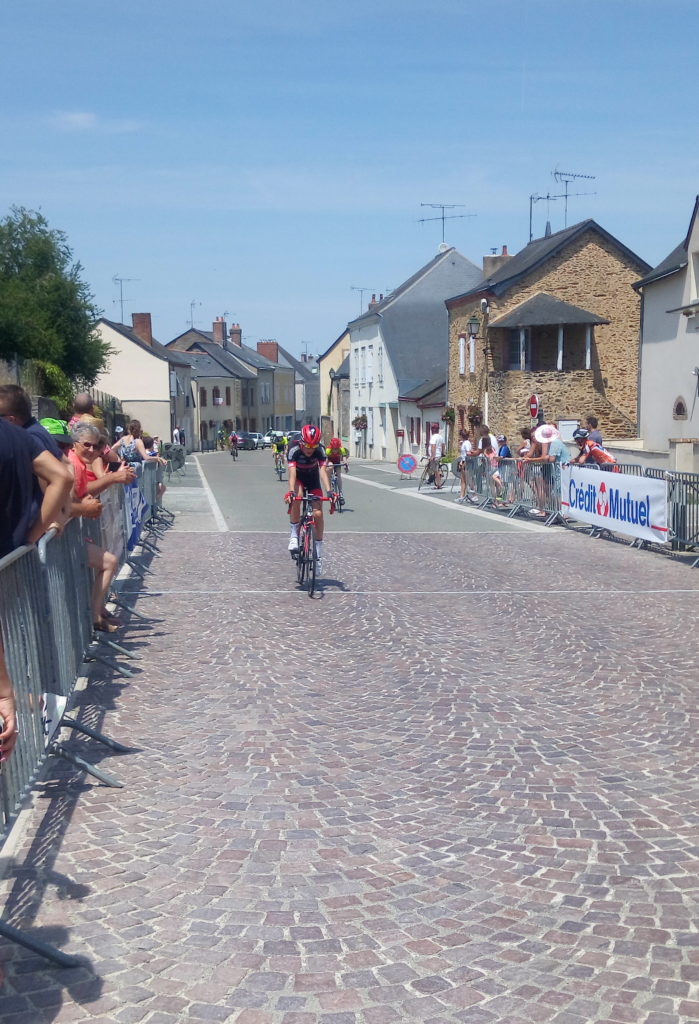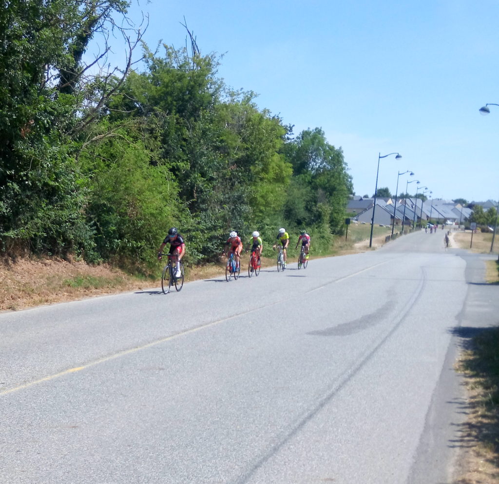 Le départ est lancé. Le peloton est groupé pour les deux premiers mais très vite Lucas peine à suivre le rythme imposé par les mayennais. Une échappée de 4 coureurs se forme. Aurélien tente de revenir avec 2 autres concurrents mais l’entente est mauvaise. Des petits pelotons se forment. Lucas arrive à s’accrocher dans l’un d’entre eux.