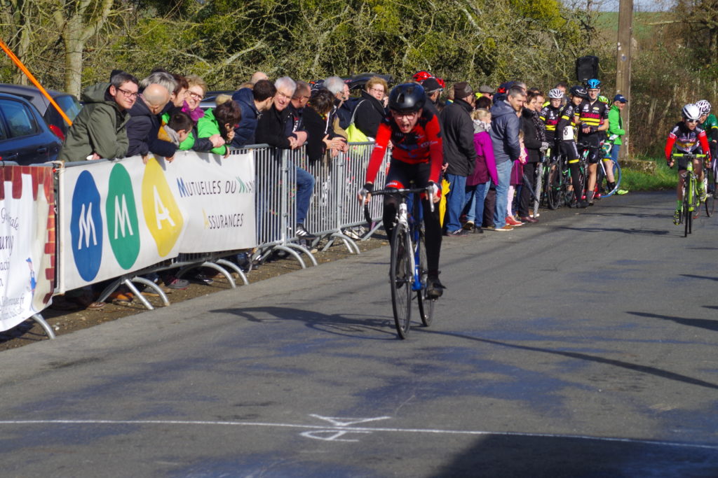 Ils avaient trois tours de circuit à effectuer soit 16km. Le premier tour était bloqué afin que tous ces jeunes restent groupés. Puis au passage sur la ligne, un coureur est parti. Aucun des poursuivants ne pourra suivre le rythme imposé. Derrière, un groupe de quatre jeunes se forme avec parmi eux Elouen. On le sent très en forme notre Montgesnois et c’est dans un très beau sprint qu’il prendra la deuxième place sur le podium.