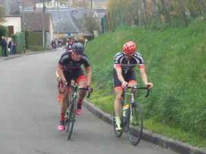 Pas de chance pour Maxime GONSARD qui creva dans la pampa et du rentrer à pied car pas de voiture balai et quand à Théo LEROUX pourtant sur les devants il chuta sans gravité.