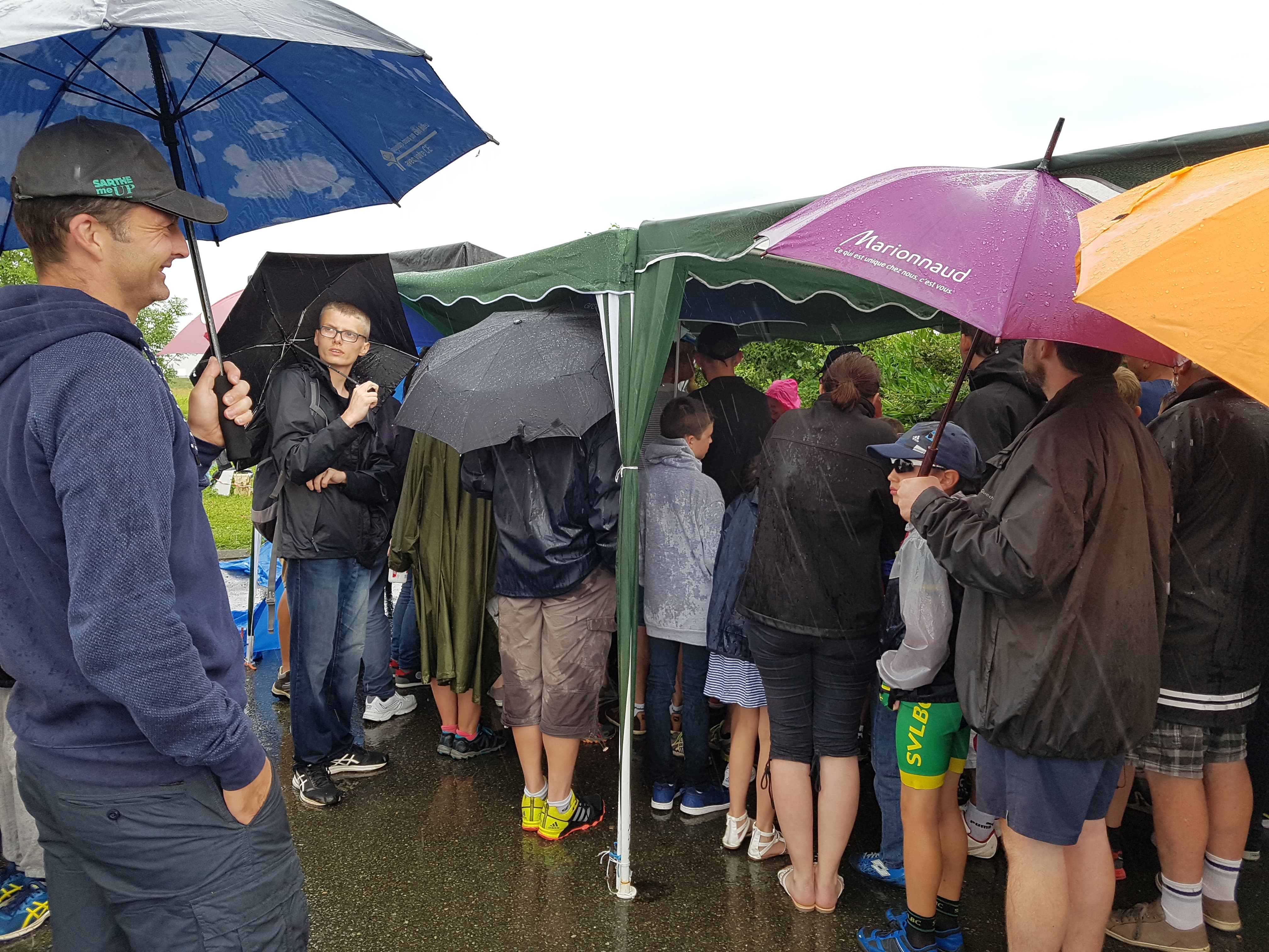 Comme un peu partout en Sarthe les conditions climatiques pour tous ces jeunes où entre les averses il fallait se mettre à l’abri.