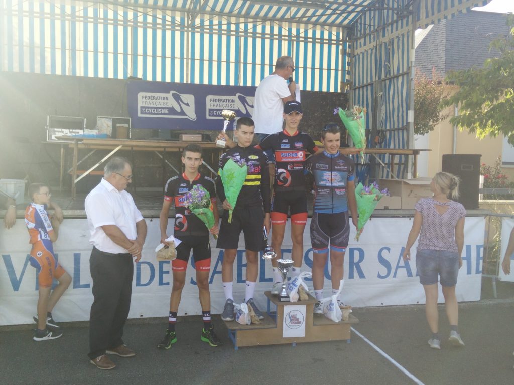 Sur la fin Alexandre faiblit un peu et Dorian finit seul avec 2mn d’avance sur un certain Erwan BESNIER complice à la course de l’Américaine et adversaire sur la route. Alexandre sera repris dans le dernier tour et sera récompensé par un bouquet pour sa combativité.