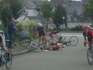 Un circuit de 3 kms rendu  très difficile avec le vent . Un groupe de 8 avec Dorian Thomas et Alexandre s’échappa au 3ème tour et ne sera jamais revu . Derrière un contre avec Ludwig  échoua de peu pour revenir sur échappée et termine de nouveau 1er minime 1 . Dorian part seul à 4 tours de l ‘ arrivée et les poursuivants n ‘arrive pas a s’entendre car nos Montgesnois font le frein ce qui permet à Dorian de lever une nouvelle fois les mains avec plus 1 minute d’avance . Malheureusement pour Alexandre et Thomas à quelques mètres de leur dernier tour un concurrent de leur groupe déchaussa et chuta ce qui força nos jeunes à mettre pied à terre pour ne pas être pris dans la chute . Le temps de repartir pour eux et déjà 3 concurrents étaient déjà repartis  avant eux .