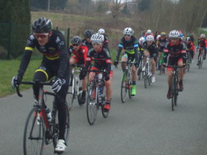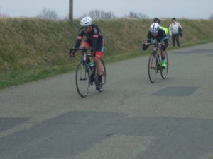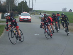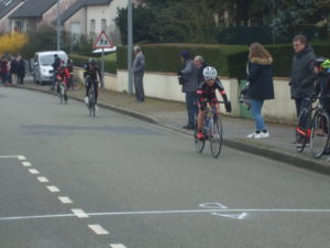 Wilson, Ludwig, Aurélien (légèrement malade) et Robin ont pris le départ sous un froid glacial dans un peloton de 31 coureurs pour 12 tours de 2,300kms. Pendant les 4 premier tour le peloton c’est beaucoup observé.