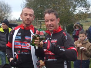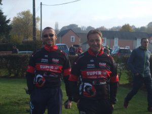 Pour Cédric c’était son baptême de cyclocross. Évidemment il espérait pas faire une performance car après la soirée le foie s’est un peu mélanger avec l’ estomac à monter et descendre les bosses les zyg zag et les planches. Il a pris des cours particulier de descente de vélo par son copain Le Roi de la pédale d’un jour. Cédric a pris du plaisir et c’est le principal car il ne s’attendait pas mieux à part une bonne partie de rigolade et pour sortir pour aider une bonne digestion de la veille. Pour Jérôme lui aussi il pris du plaisir et à eu un esprit d’équipe en attendant son coéquipier. Cédric espère que pas beaucoup d’UCM ont vu la course car cela sent le licenciement……ouille ouille….