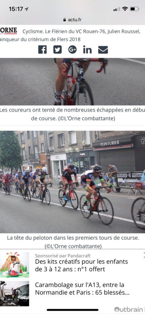 Anthony BARILLET a participé au critérium de Flers pour 40 tours et une distance de 84kms et une belle bosse de 600métres où une échappée de 10 c’est formé à mi- course mais pas pas pu y aller quand elle est partie.