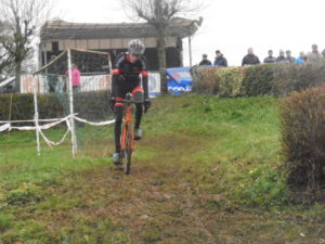 La course pour lui a bien commencé mais dés le premier tour des soucis de dérailleur qui se sont répéter plusieurs fois, puis des problèmes de chaine qui sautait au changement de vitesse et pour finir les cales. Tout ceci du a la boue certainement.